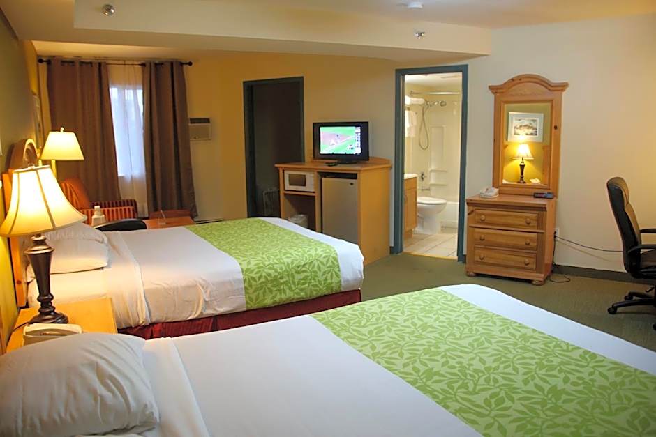 This suite features a complete kitchen, a flat-screen cable TV and a desk.